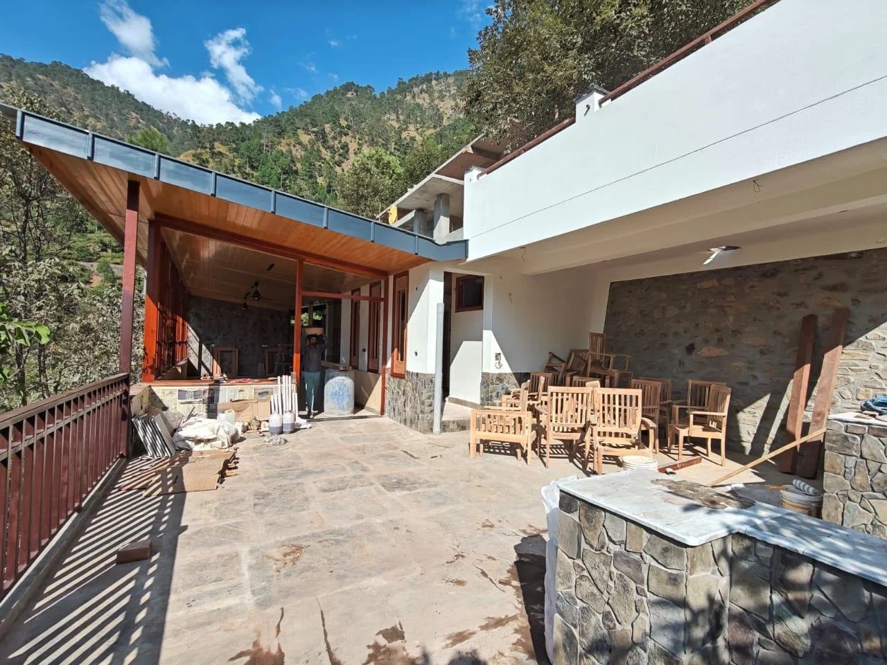 The primary function is that of a dining and a kitchen with a verandah sit out that overlooks the beautiful forested valleys. This space doubles up as a multpupore hall during religious gathering events which are prominent in the region.